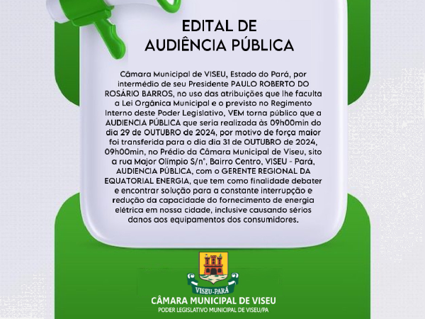 Leia maisCONVOCAÇÃO DA AUDIÊNCIA PÚBLICA COM O GERENTE REGIONAL DA EQUATORIAL ENERGIA